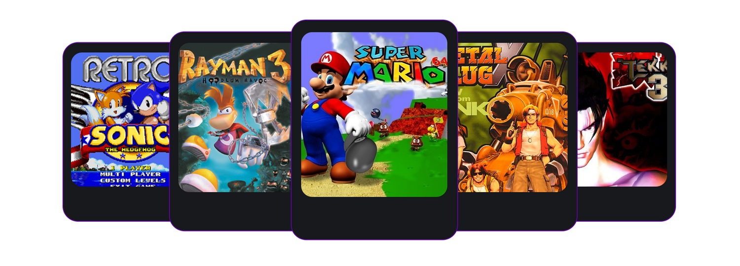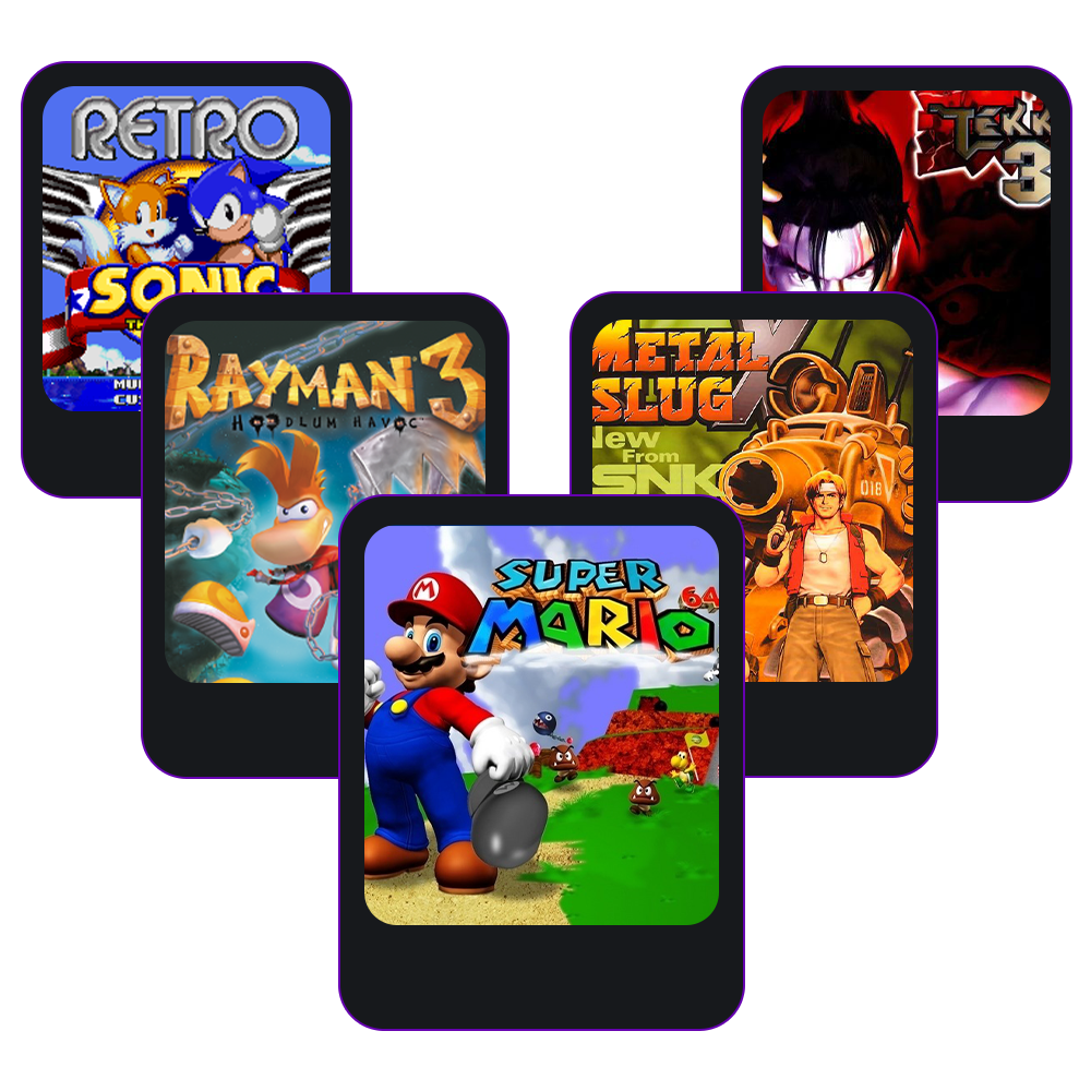 Impressionnante sélection de classiques, des incontournables de la NES aux titres légendaires de la PS1, jusqu’aux expériences nouvelle génération de la PS5. Nos consoles, compactes et faciles à transporter, vous offrent la liberté de jouer où que vous soyez, en solo ou à plusieurs. Redécouvrez l’émotion des jeux de votre jeunesse, partagez des instants précieux et créez de nouveaux souvenirs dans un univers empreint de nostalgie… tout en profitant des sensations modernes.